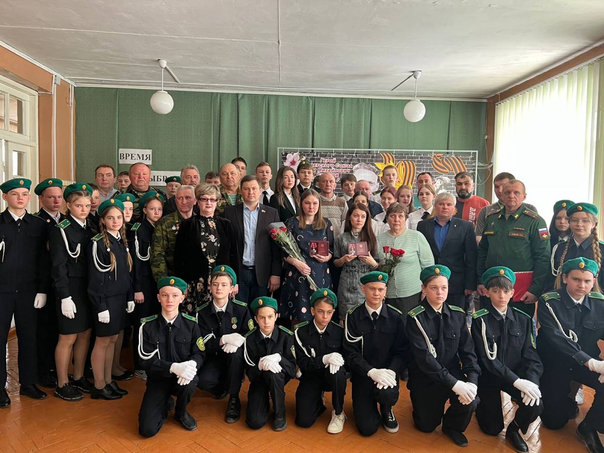 В школе №2 г.Белинского им.Р.М.Сазонова в рамках акции «Лица героев» проекта «Новая школа» партии «Единая Россия» открыли памятный баннер Героя Советского Союза Римма Михайловича Сазонова, а также вручили Ордена Мужества родственникам, погибших при исполнении служебного воинского долга в спецоперации на Украине Ивана Захаркина и Алексея Крыгина.