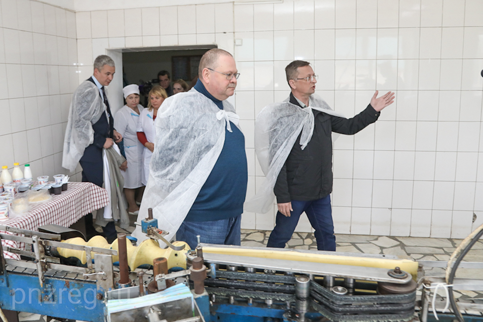 В Вадинске Олег Мельниченко осмотрел цеха по производству кисломолочных продуктов. Глава региона назвал предприятие небольшим, но стабильно работающим. В среднем здесь ежедневно выпускают 2 тонны кисломолочной продукции с брендовым названием «Аленушка».