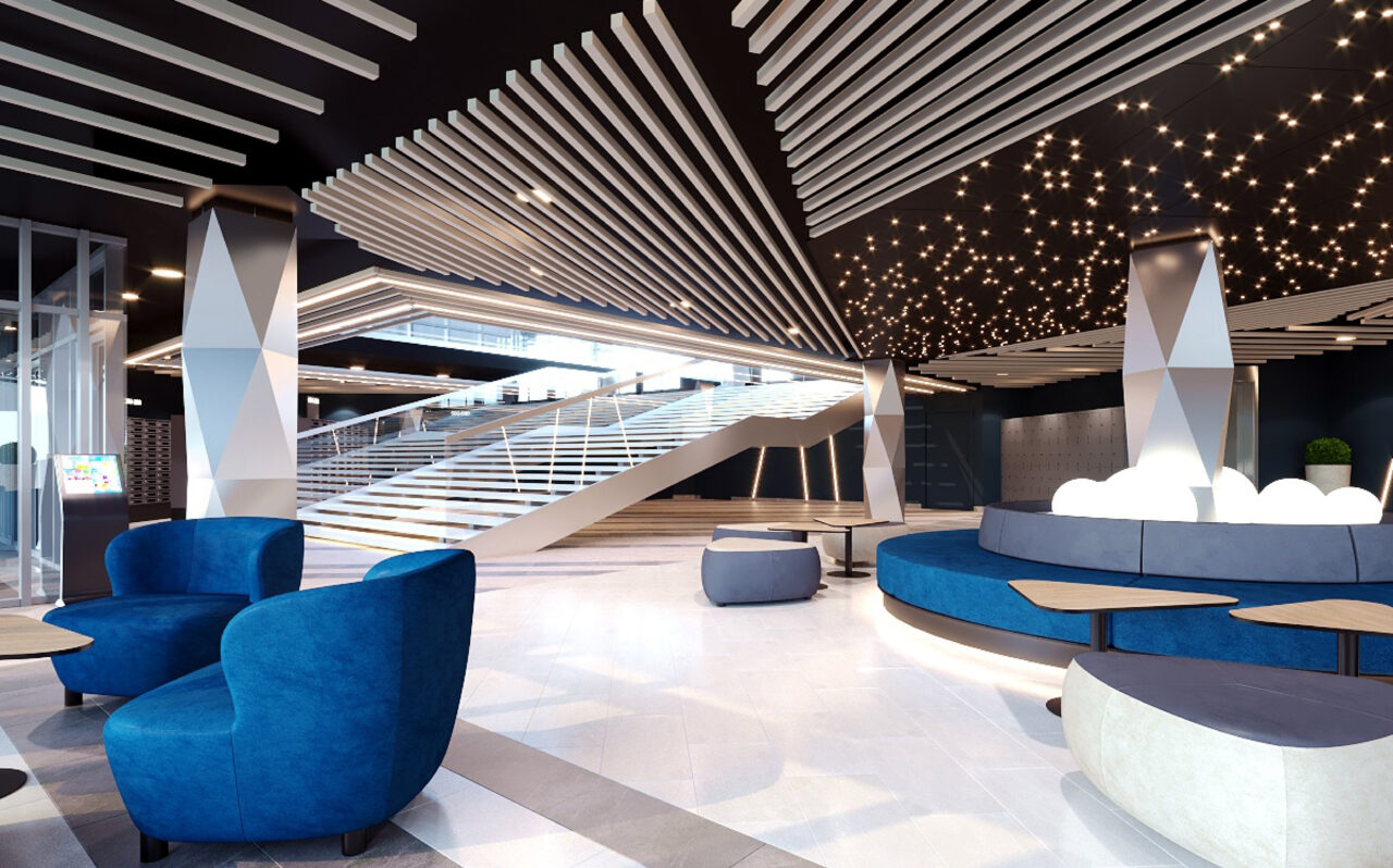 Дизайнерские дворы с подсветкой и арт-объектами. Огромный подземный паркинг площадью более 35 000 кв. м. Космические холлы с атмосферой звездного неба. Масса вариантов для спорта, игр и отдыха — рядом с домом. Два этажа офисов, кафе и магазинов — чтобы делать покупки не выходя за пределы жилого комплекса. И, конечно, потрясающие виды из увеличенных окон или через полностью стеклянные стены.