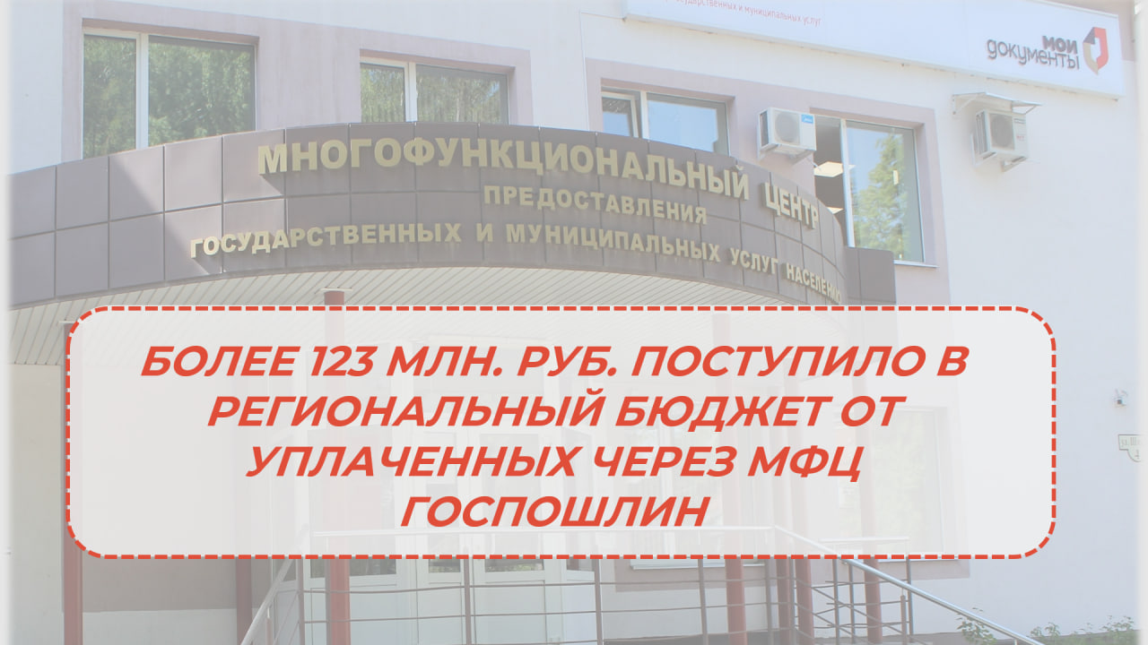 БОЛЕЕ 123 МЛН. РУБЛЕЙ ПОСТУПИЛО В РЕГИОНАЛЬНЫЙ БЮДЖЕТ ОТ УПЛАЧЕННЫХ ЧЕРЕЗ МФЦ ГОСПОШЛИН