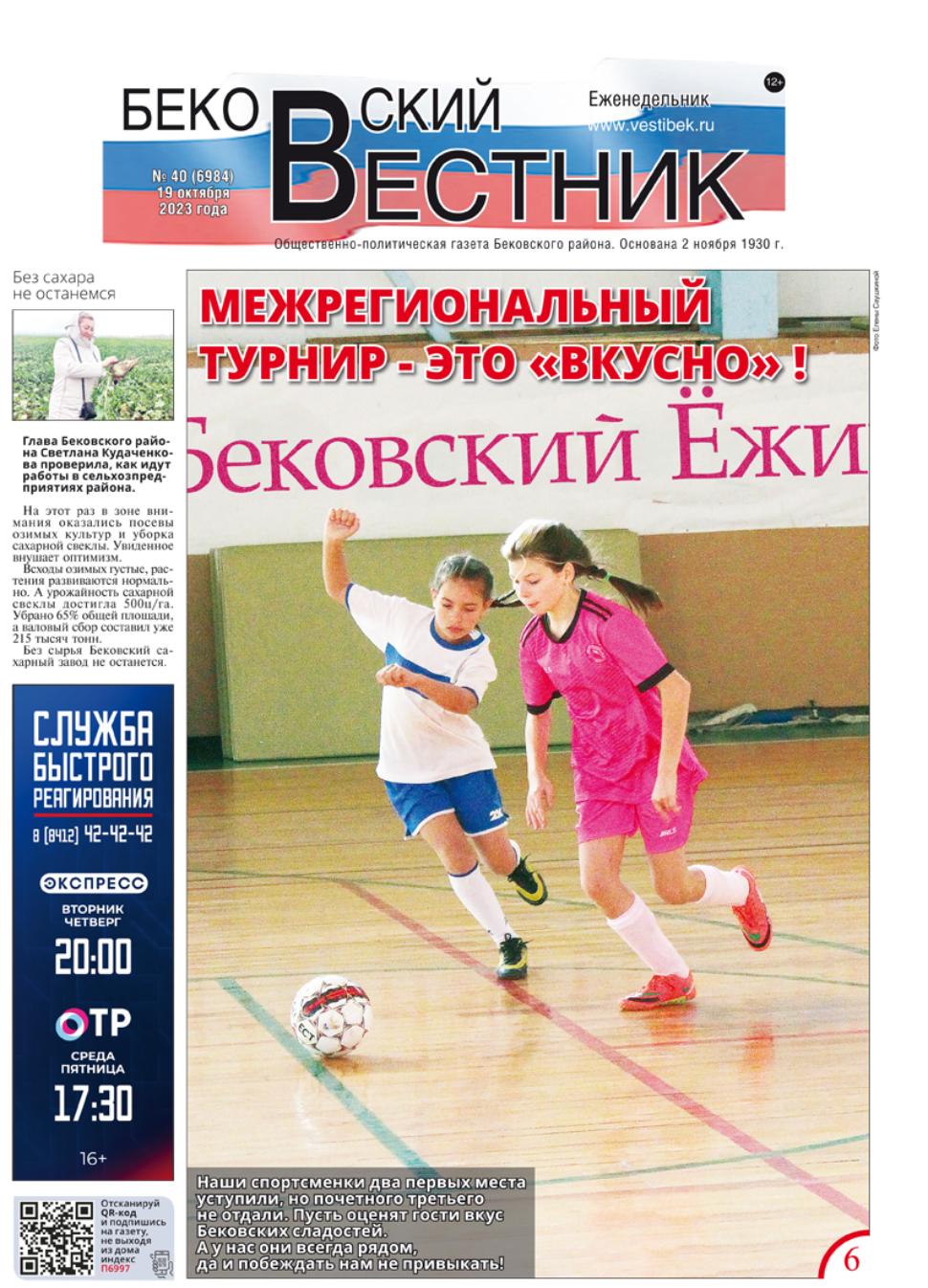 В этом номере читайте: о турнире по мини-футболу на призы Бековского пищекомбината "Бековский ежик", про областной субботник по благоустройству и санитарной очистке территорий, о реализации нацпроекта "Безопасные и качественные дороги" в регионе, о расширенном заседании районной КДН и ЗП.
