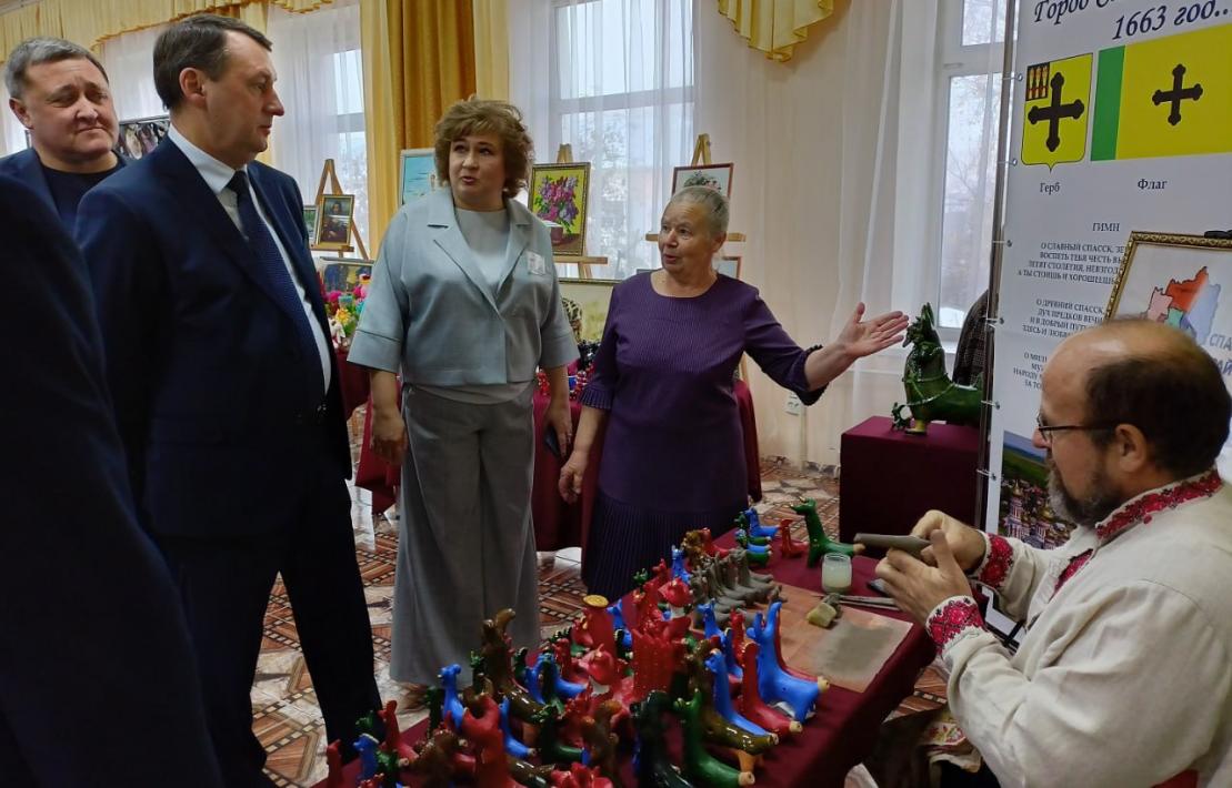В фойе районного дома культуры гостей встречала выставка, посвященная истории образования Спасского района. Присутствующие могли ознакомиться с развитием местного самоуправления Спасского района. .