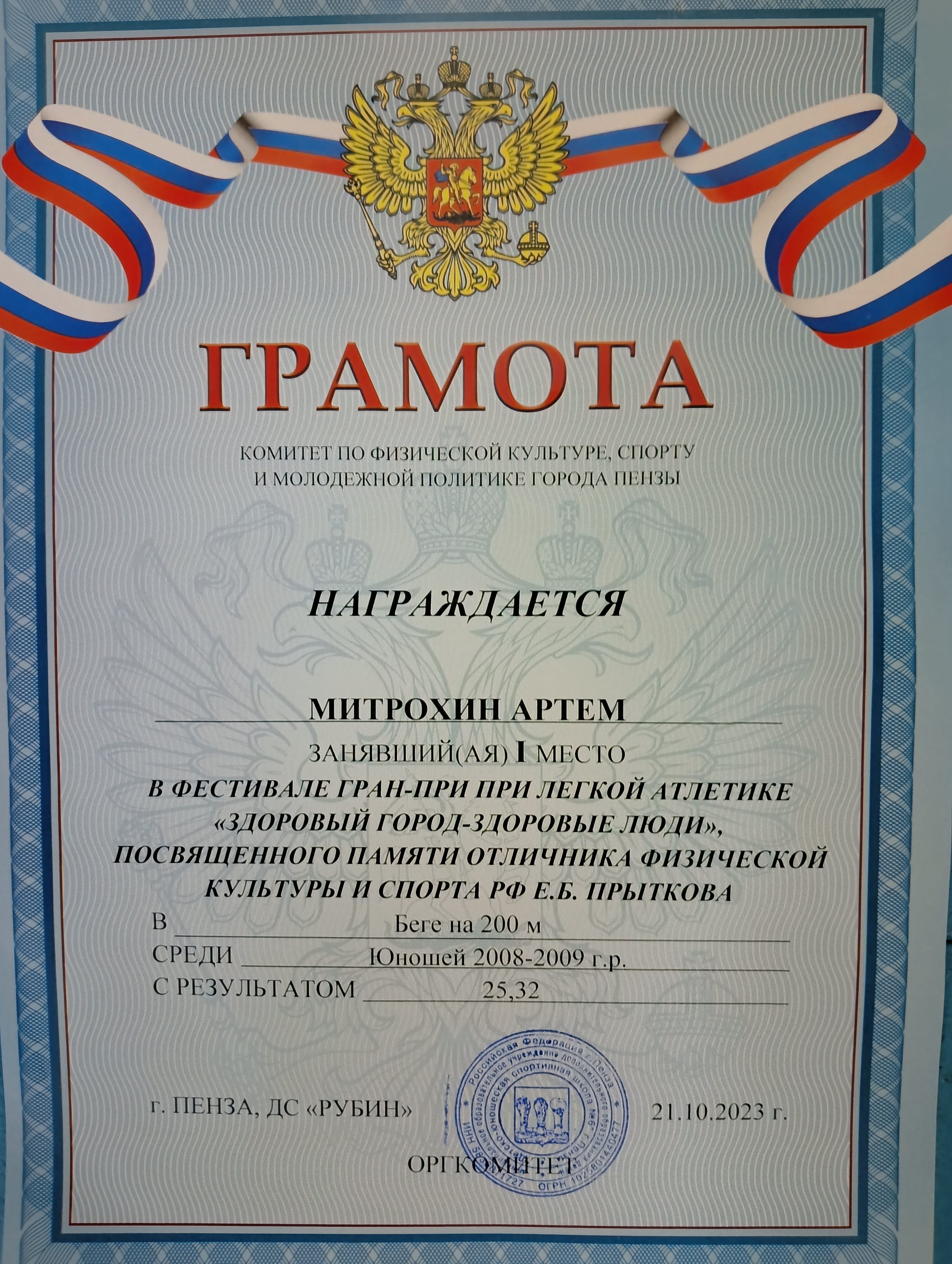 4 этап фестиваля Гран-При г. Пензы по легкой атлетике состоялся 21 октября 2023 г. в Пензе во дворце спорта «Рубин».