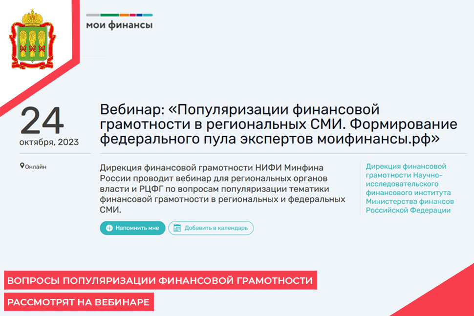 Вопросы популяризации финансовой грамотности рассмотрят на вебинаре