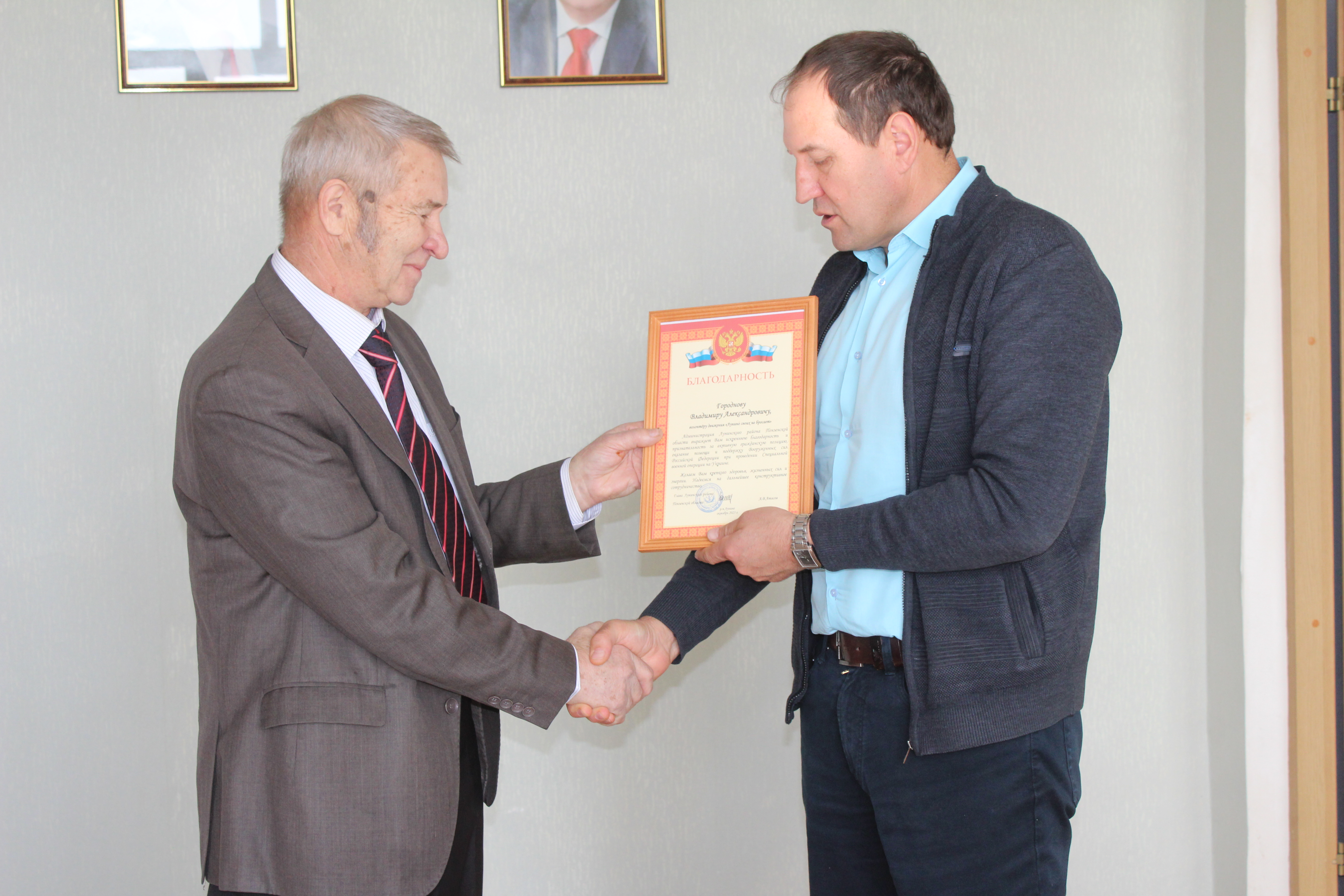 Житель р. п. Лунино Городнов Владимир Александрович принял решение о передаче своего автомобиля УАЗ в зону СВО нашим бойцам. Сегодня глава Лунинского района Алексей Атясов встретился с Владимиром Александровичем и выразил ему слова признательности и благодарности. Волонтёрская группа района осуществит техническую подготовку автомобиля перед отправкой на фронт. В настоящее время идёт формирование груза (маскировочные сети, продукты питания, средства гигиены, лекарства и др.), который автомобиль и доставит нашим ребятам. В передаче автомобиля волонтёрам принял участие министр труда, социальной защиты и демографии Пензенской области Алексей Качан.