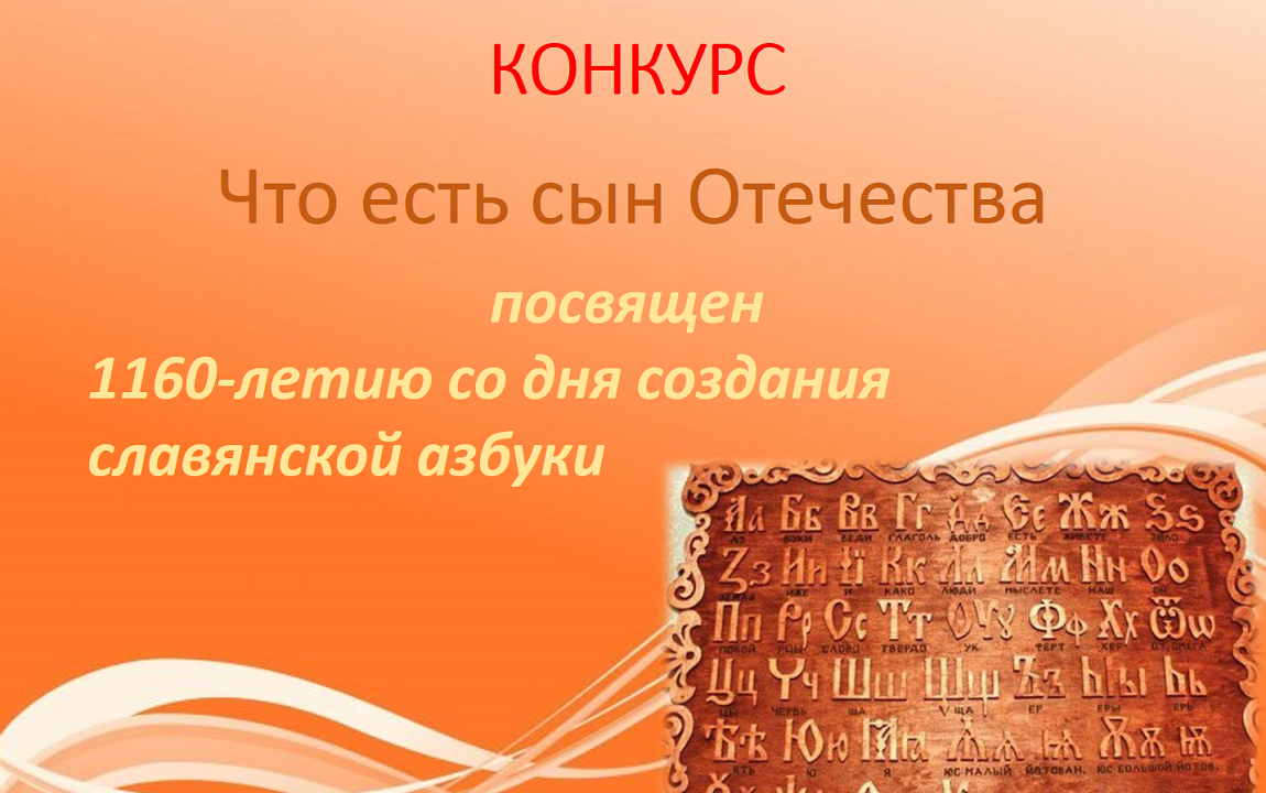 Конкурс «Что есть сын Отечества» в 2023 году проводится в рамках мероприятий, посвящённых 1160-летию со дня создания славянской азбуки, «В веках живет могучий дух славянский…».