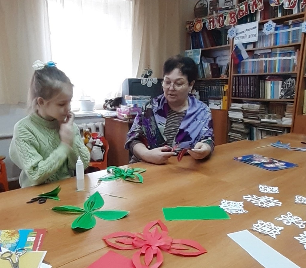 5 января в библиотеке с. Соседка состоялся мастер-класс «Галерея снежинок» .