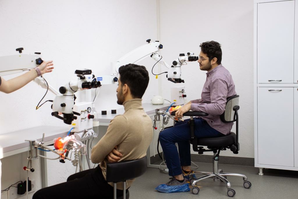 На базе клиники «Estedental» с целью обучения и отработки мануальных навыков создана учебная база для практикующих врачей, клинических ординаторов, студентов. Каждое место оборудовано высококачественным фантомом, стоматологической установкой и учебным микроскопом.