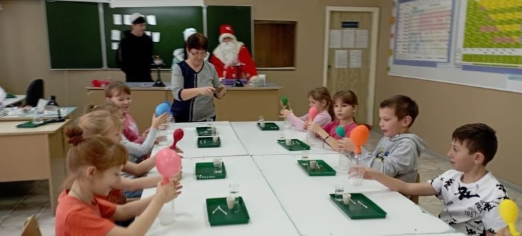 Новогоднее настроение создает для учащихся и «Точка Роста» школы. Вместе со сказочными героями ребята стали участниками познавательно-развлекательного мероприятия. Дети провели увлекательные опыты по химии и физике.