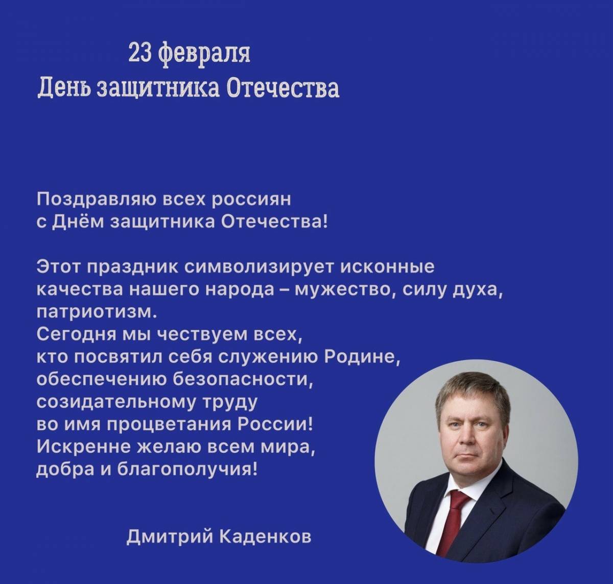 Депутат фракции "Единая Россия" Государственной Думы РФ Дмитрий Каденков поздравляет с Днем защитника Отечества