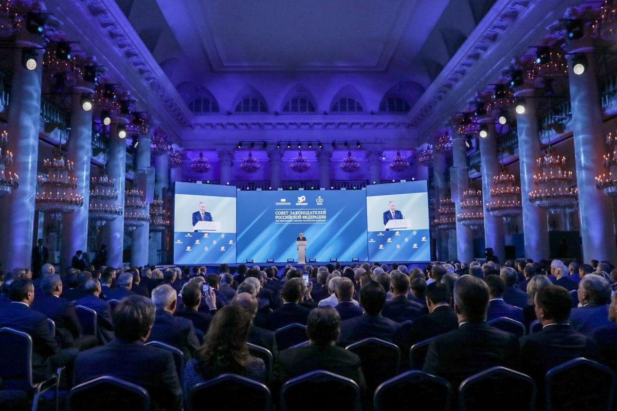 20 декабря 2023 года, в Колонном зале Дома Союзов состоялось заседание Совета законодателей, посвящённое 30-летию Федерального Собрания Российской Федерации. Были подведены итоги законодательной работы в уходящем году.