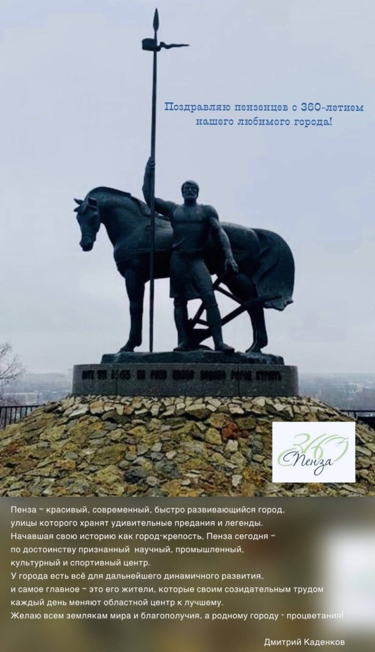 Депутат фракции «Единая Россия» Государственной Думы РФ Дмитрий Каденков поздравляет жителей Пензы с 360-летием города.
