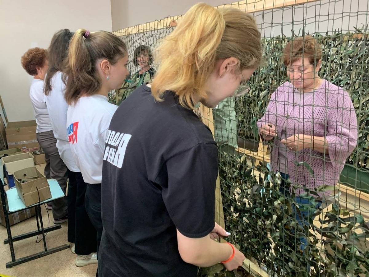 Молодогвардейцы оказали помощь в плетении маскировочных сетей для бойцов
