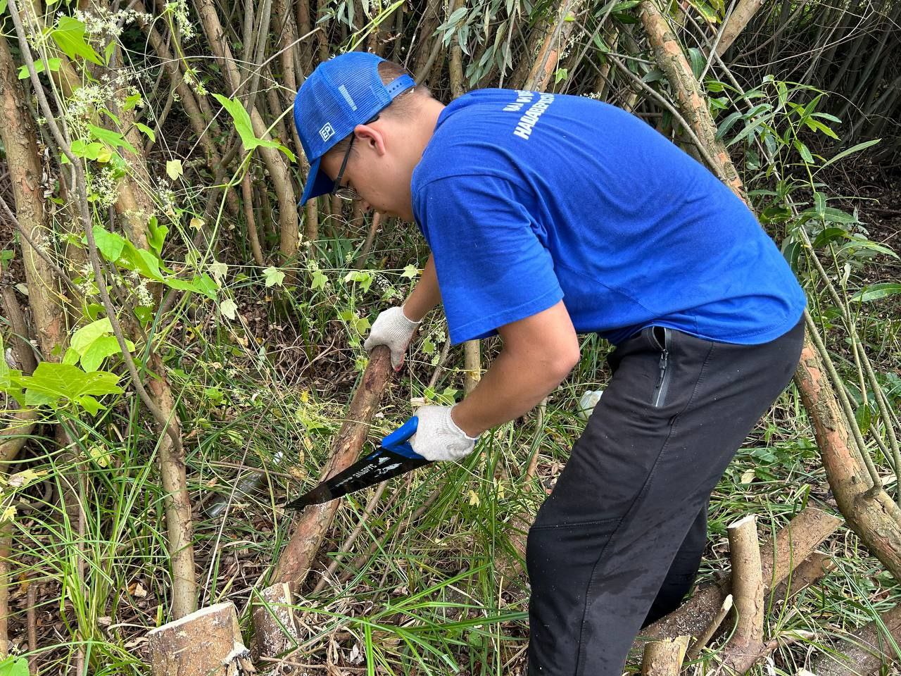 Региональный штаб «Молодой Гвардии» продолжает помогать в уборке и расчистке придомовой территории женщине, имеющей первую группу инвалидности. Сегодня молодогвардейцы расчистили заросший участок, а также вырубили древесную и кустарниковую растительность.