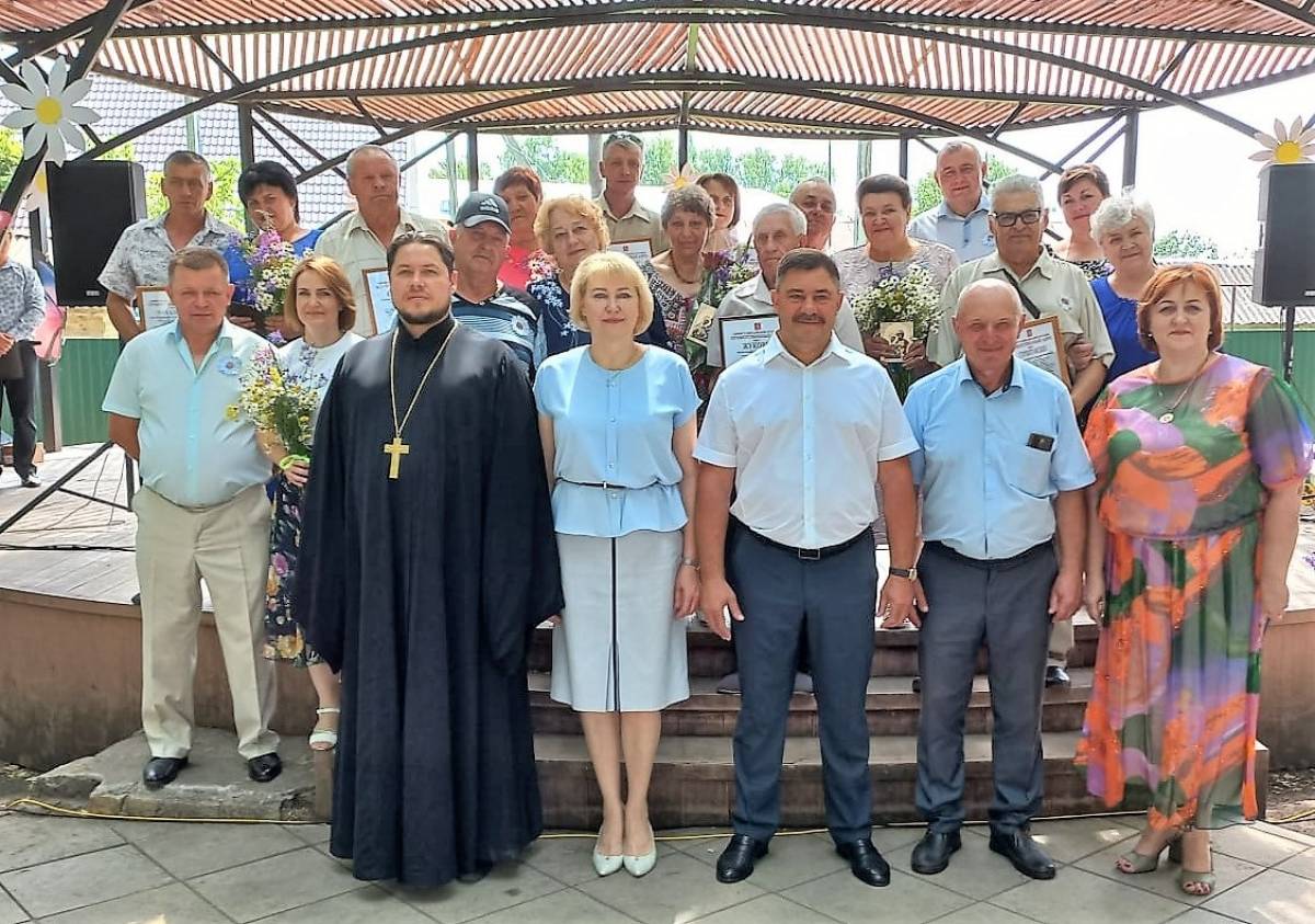 Золотым и серебряным юбилярам были вручены приветственные адреса главы администрации района, букеты ромашек и иконы Святых Петра и Февронии от благочинного, настоятеля Храма Михаила Архангела отца Сергия. Творческие коллективы района поздравили жителей своими выступлениями.