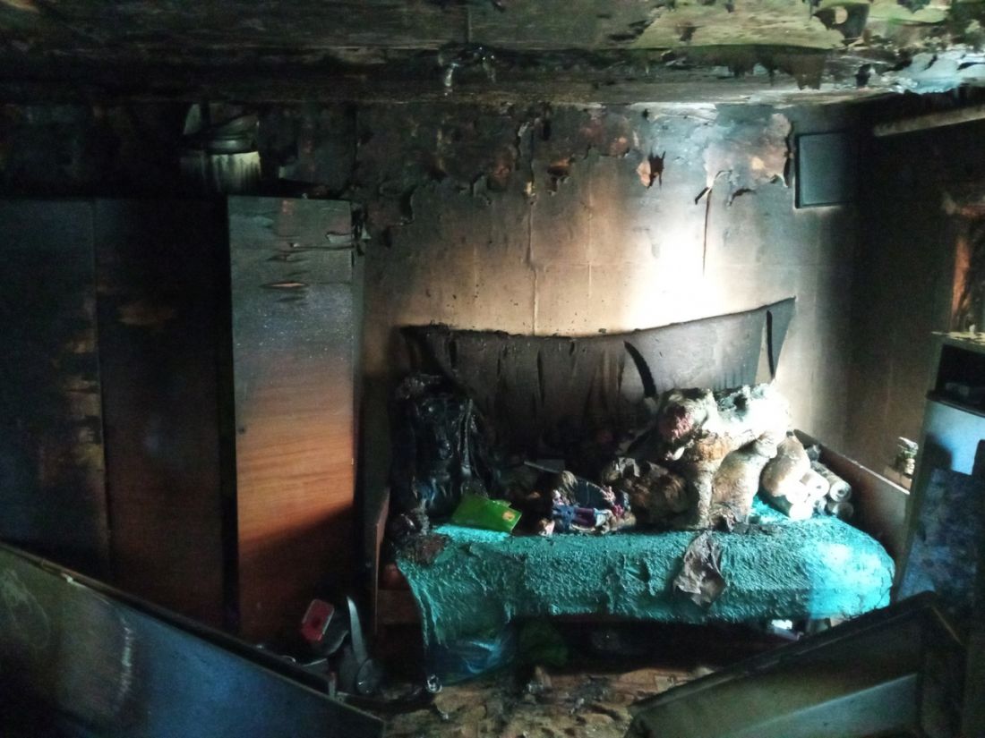 Огонь полностью уничтожил спальню и домашнее имущество. Пожар ликвидировали девять человек и три единицы техники. Пострадавших при пожаре нет.