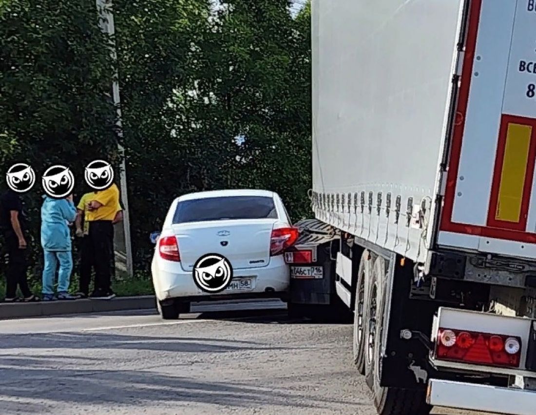 Судя по кадрам, столкнулись легковушка и большегруз. О пострадавших не сообщается. Подробности уточняются в официальных источниках.