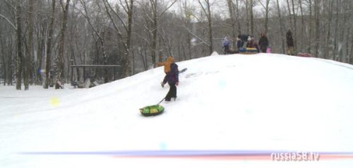 Так выглядит снежная горка в Арбековском парке. Основная помеха — люди, которые поднимаются на нее. Разогнаться до больших скоростей здесь не получится. Но, несмотря на это, опасность в виде деревьев и столбов все равно присутствует. И в случае столкновения с ними чаще всего страдает голова.