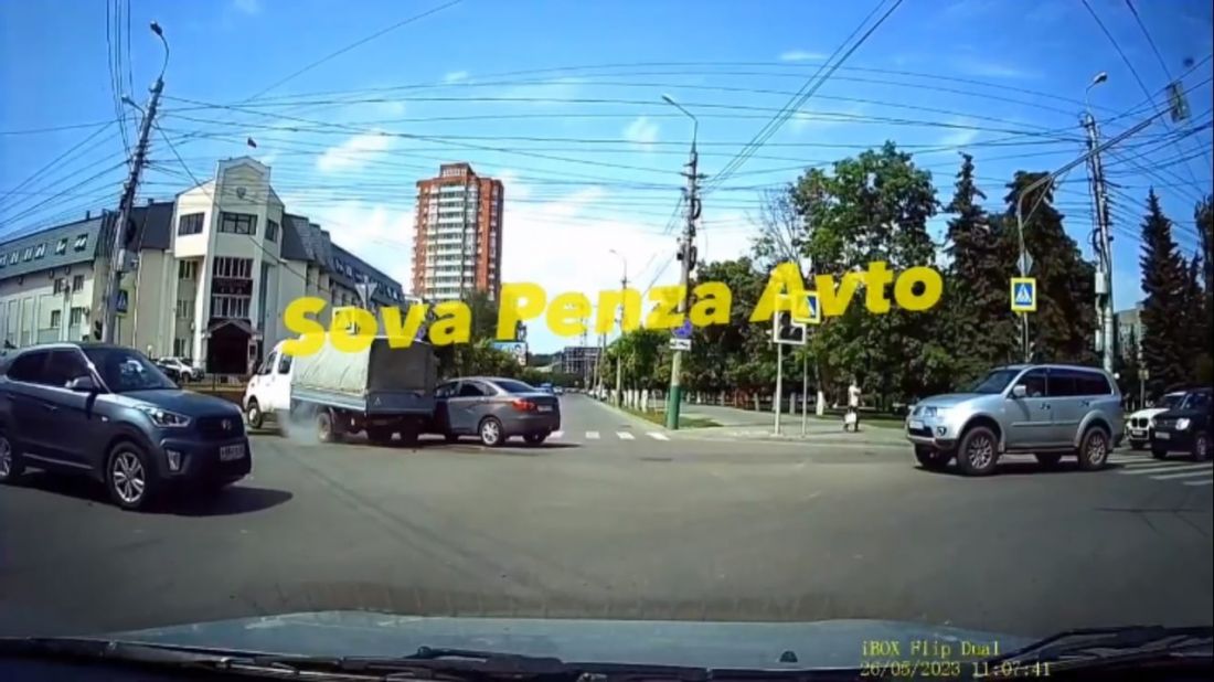 В центре Пензы из-за неработающего светофора столкнулись грузовик и легковушка