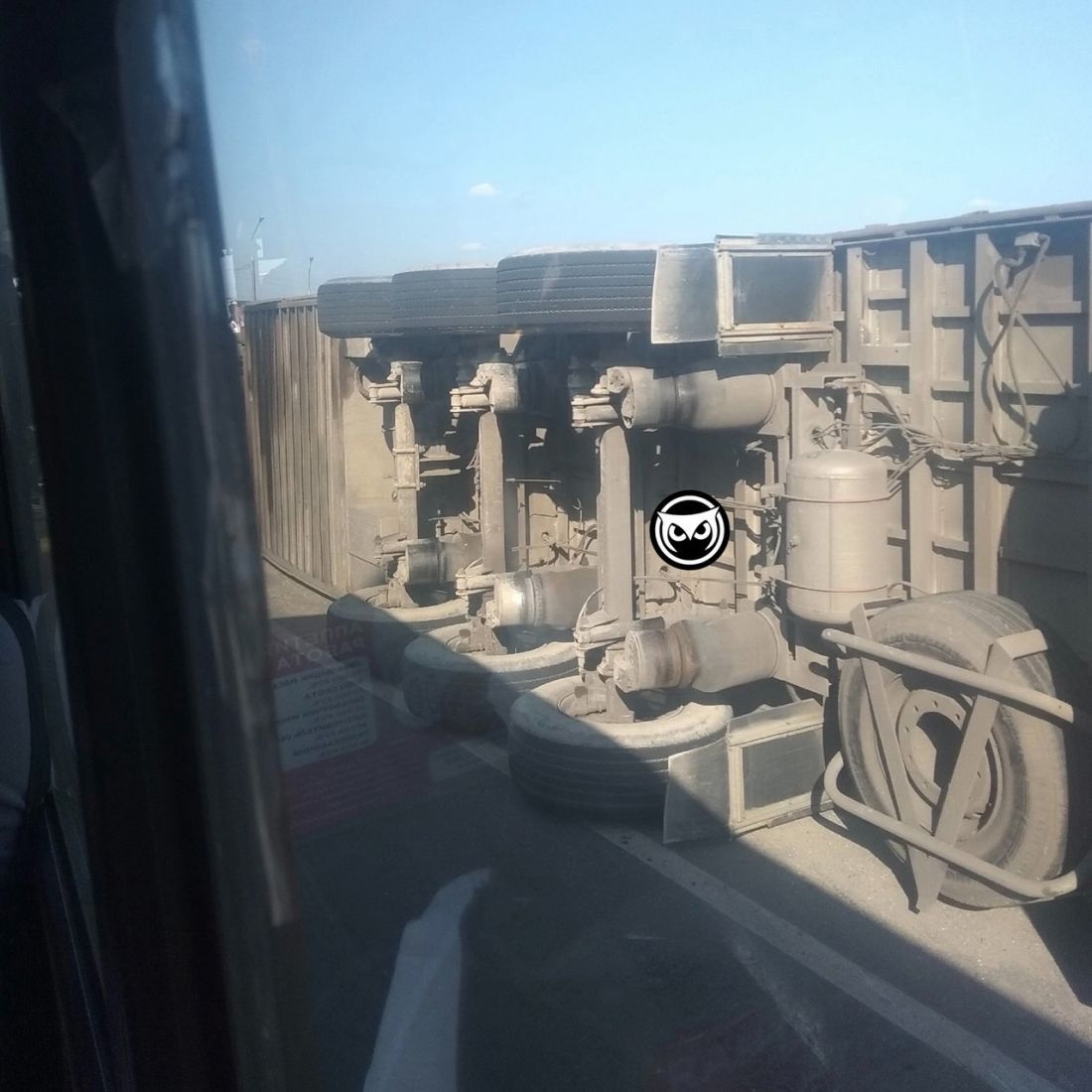 Как сообщают очевидцы в социальной сети, грузовик, груженый свиньями, опрокинулся и упал на отбойник. Из пробитой фуры тут же выбежали поросята.