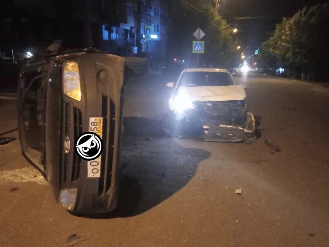 В Пензе на улице Чкалова легковушку перевернуло на бок после жесткого ДТП