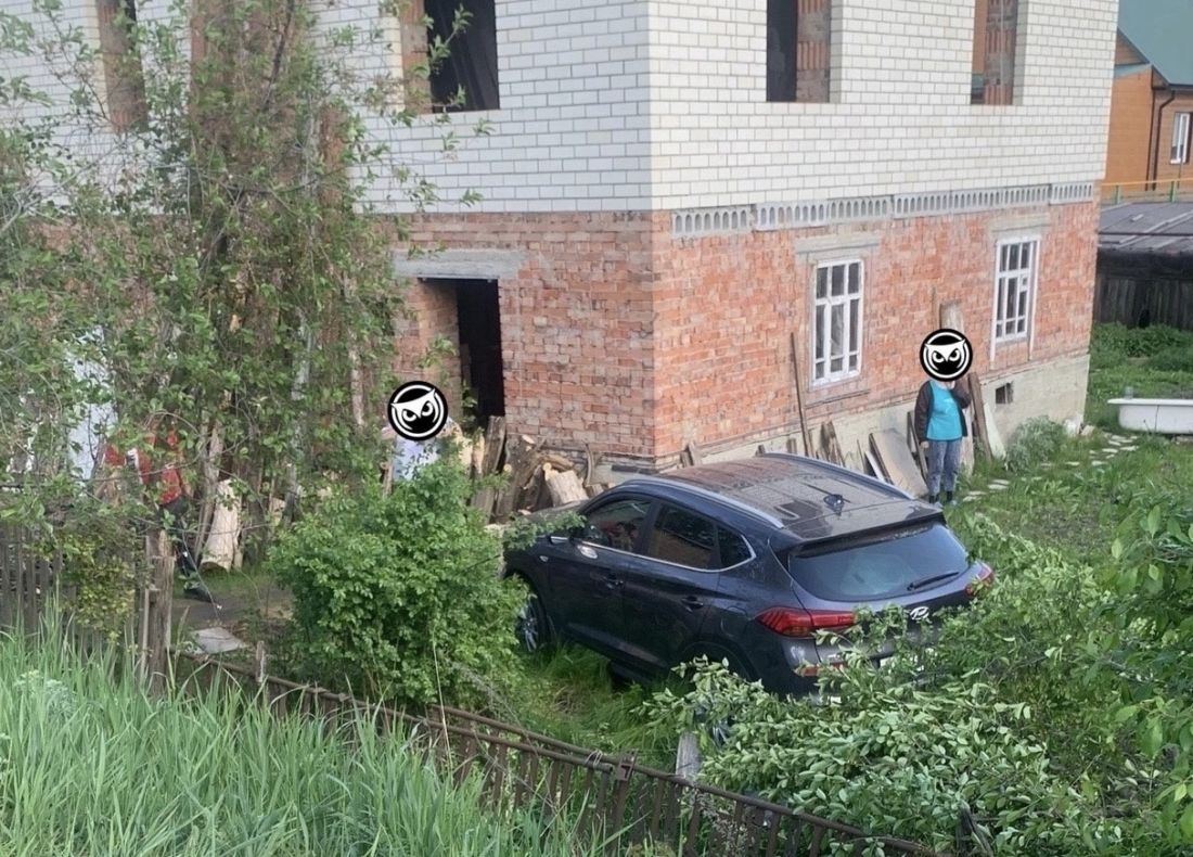 Глядя на фотографии, сделанные с места ДТП, можно предположить, что легковой автомобиль марки Hyundai пробил деревянный забор и врезался в недостроенное здание.