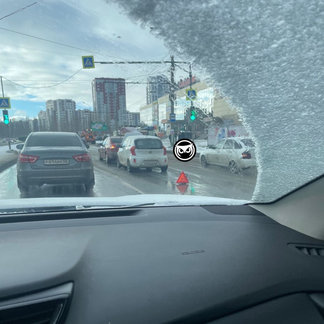 Судя по снимку, два легковых автомобиля не поделили дорогу возле торгового центра «Стрелецкий».