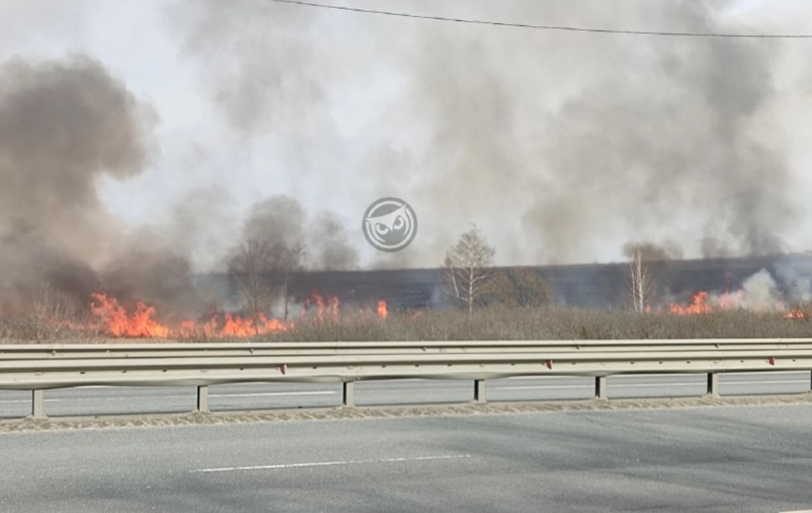 В Пензе в районе трассы М5 произошел жуткий пожар из-за сухой травы