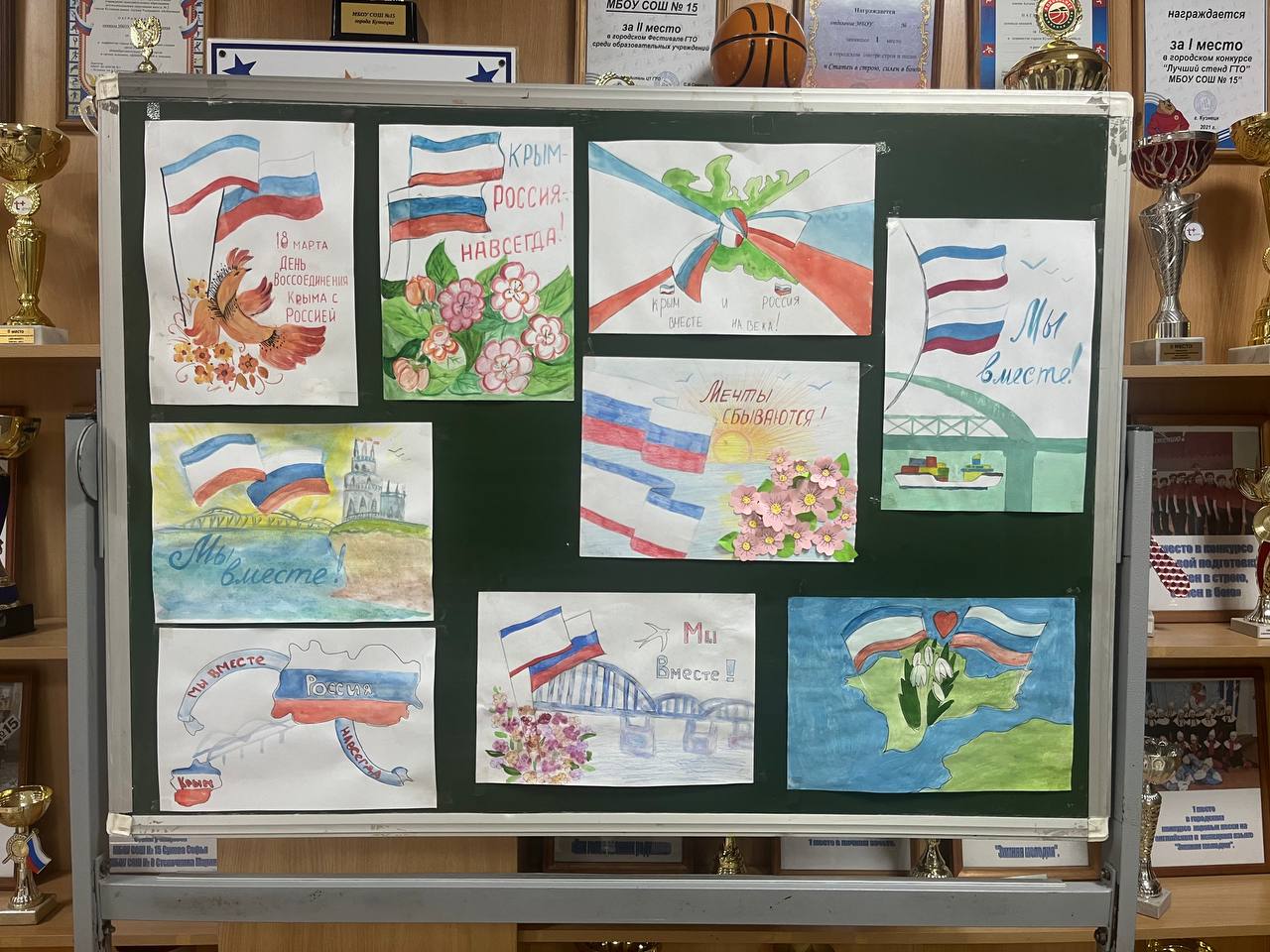 Учителя истории провели единый открытый урок «Крым и Россия – общая судьба, рассказали о событиях, предшествовавших присоединению Крыма к России. В рамках внеклассных мероприятий, прошли мастер-классы, где ребята изготавливали символ воссоединения – подснежники, оформляли стенды «Крымская весна», приняли участие в акции «Севастопольская роспись», онлайн-экскурсии "История одного полуострова».