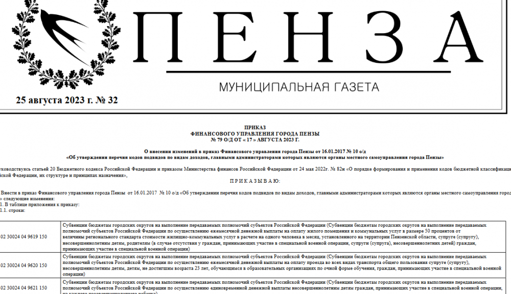 25 августа вышел выпуск №32 муниципальной газеты "Пенза"