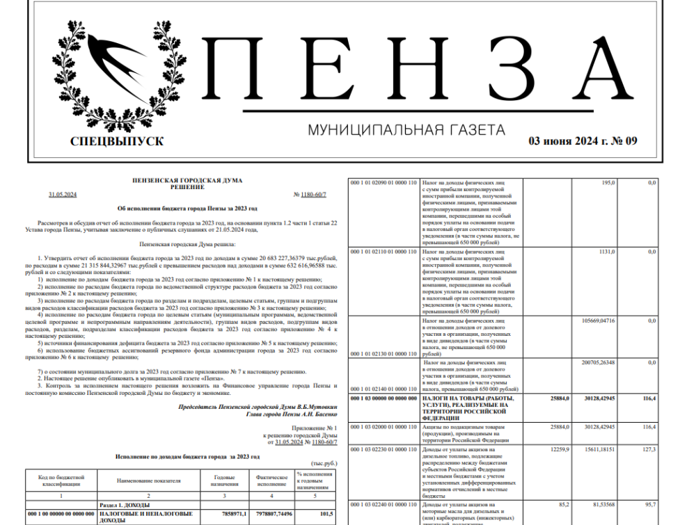 3 июня вышел спецвыпуск №9 муниципальной газеты "Пенза". Газета учреждена Пензенской городской Думой в соответствии с Уставом города Пензы.