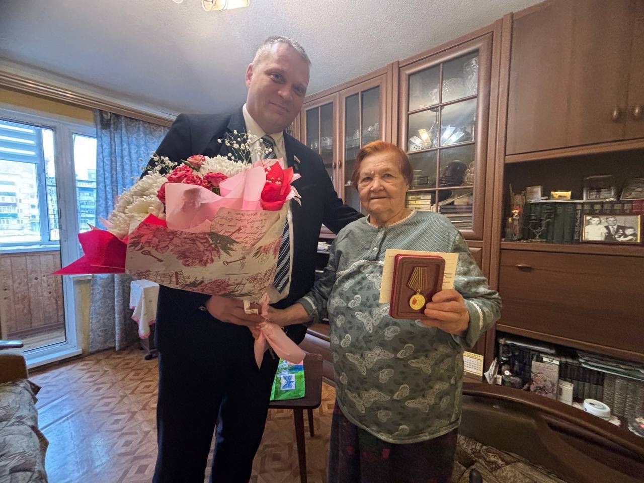 Народный избранник вручил ветерану юбилейную медаль, учрежденную президентом РФ Владимиром Путиным в честь 80-летия Победы в Великой Отечественной войне.Евдокия Павлова с 1943 года трудилась в органах КГБ. Александр Артамошкин пожелал пенсионерке счастья, здоровья и благополучия.