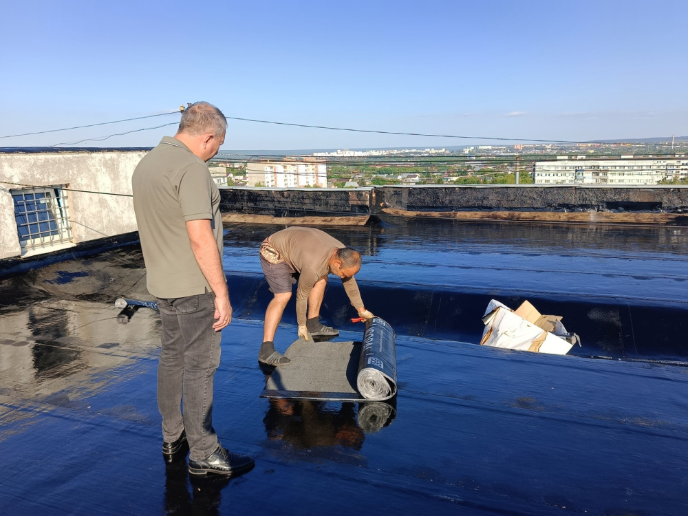 Денис Желиховский проконтролировал ход работ по капитальному ремонту кровли дома №10 по улице Тепличной