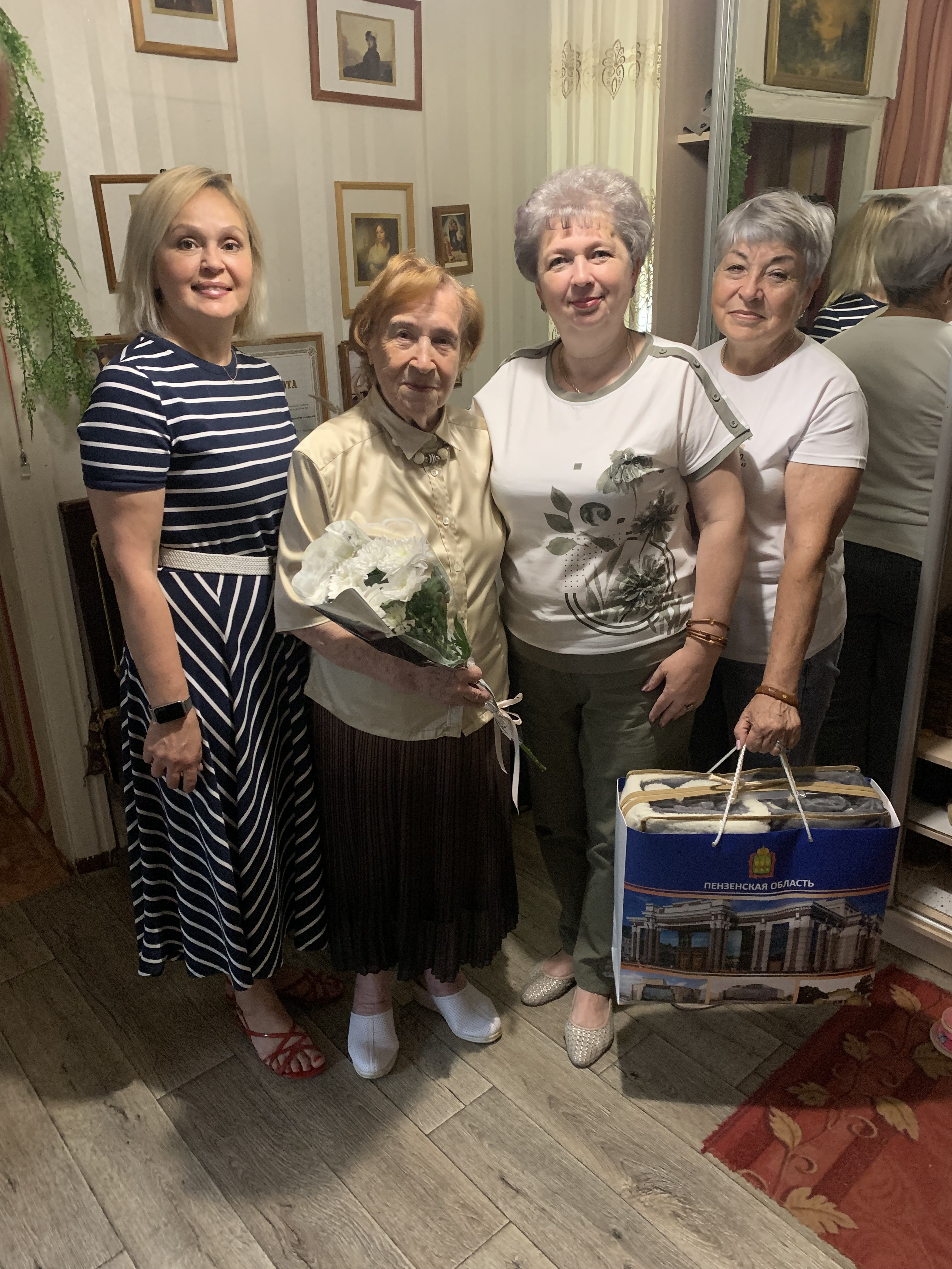Начальник отдела социальной защиты населения администрации города Кузнецка Ирина Александровна Мажаева, директор МБУ «КЦСОН города Кузнецка» Оксана Юрьевна Красникова и специалист по социальной работе Ольга Анатольевна Суворова поздравили Клавдию Ивановну Хромченко с 96-летием. Родилась Клавдия Ивановна в городе Пушкин Ленинградской области. Отчетливо помнит страшные дни блокады, которые, будучи юной девушкой, пережила вместе с семьей. После снятия блокады семья была эвакуирована в город Касимов Рязанской области. После окончания школы Клавдия Ивановна поступила в Симферопольский педагогический институт на факультет физвоспитания, где она познакомилась со спортсменом, активистом Анатолием Михайловичем Хромченко, ставшим впоследствии заслуженным тренером РСФСР. Молодые люди поженились и в 1953 году получили дипломы и направление в Пензенское облоно, где Анатолия Михайловича распределили в мужскую школу № 4 города Кузнецка, а «краснодипломницу» Клавдию Ивановну – в педагогическое училище. Они были первыми в нашем городе работниками физического воспитания с высшим образованием. В Кузнецком педагогическом училище Клавдия Ивановна проработала до выхода на заслуженный отдых. Клавдия Ивановна - бодрый, активный, жизнерадостный человек, пользующийся уважением общественности города.
