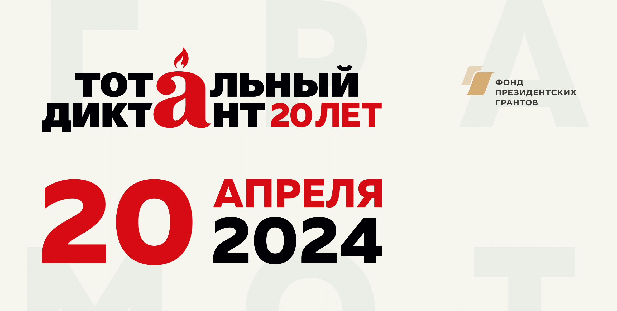 Тотальный диктант состоится в единый день – 20 апреля, в единое время – в 14:00 (с поправкой на часовые пояса) во всех субъектах Российской Федерации и за рубежом на специально подготовленных площадках.