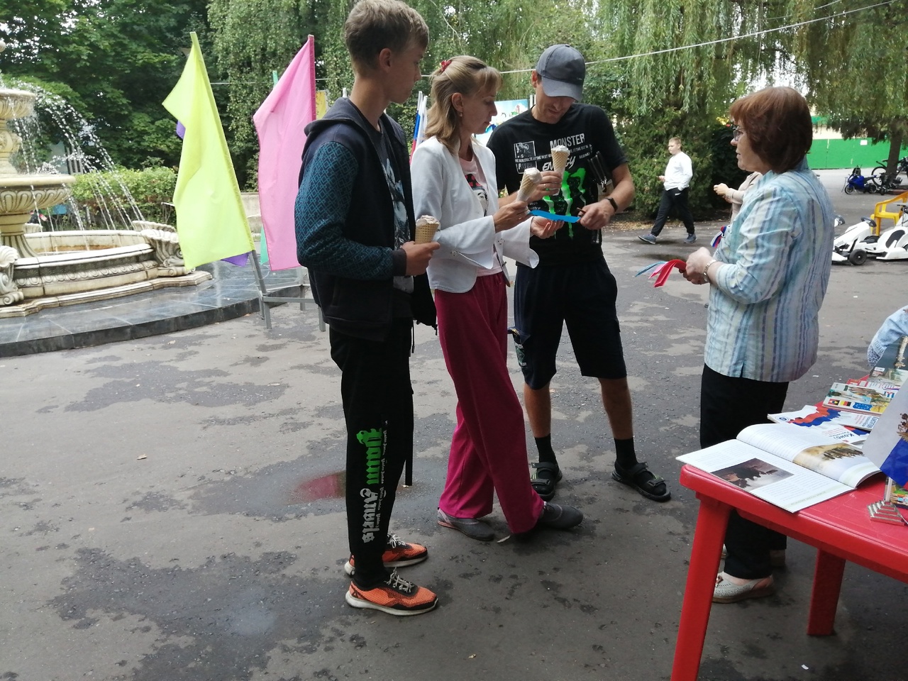 В ходе акции, которая проходила в «Нескучном саду» и на центральных улицах города, молодогвардейцы прошли с флагом России, раздавали прохожим ленточки-триколор, рассказывали об истории праздника, значении цветов российского флага.