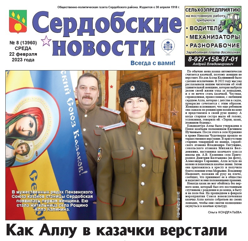 Сегодня, 22 февраля, вышел свежий номер районной газеты «Сердобские новости»