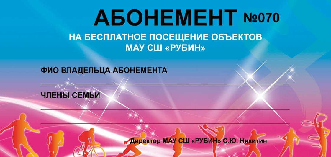 Приглашаем семьи участников специальной военной операции посетить объекты МАУ СШ «Рубин». Посещение бассейнов «Нептун» и «Парус», лыжной базы «Снежинка», крытого катка «Арена», стадиона «Рубин» бесплатное при предоставлении специального абонемента. Получить абонемент можно ежедневно с 8 до 11.30 часов в бассейне «Нептун». При себе необходимо иметь справку из военкомата и паспорт.