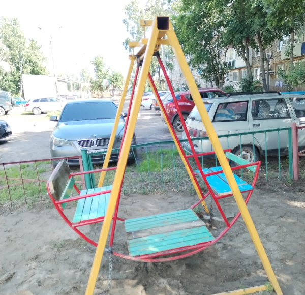 ООО «Домострой» по адресу Правды 13, на детской площадке, установлены качели.