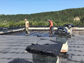 Ремонт самой крыши ведётся битумсодержащим материалом биполь. Современный эластичный кровельный ковёр на даёт трещин, обеспечивает надёжную защиту от проникновения влаги.