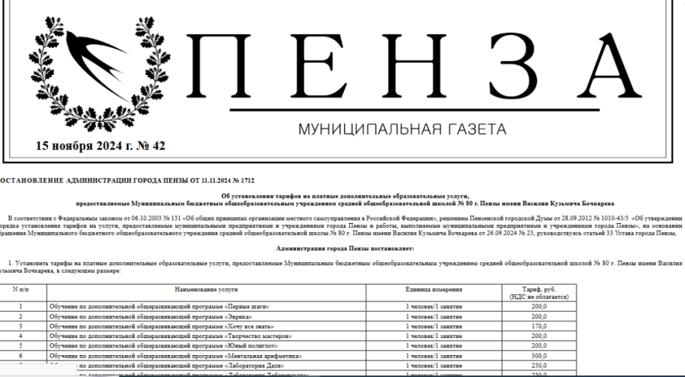 15 ноября вышел выпуск №42 муниципальной газеты "Пенза".