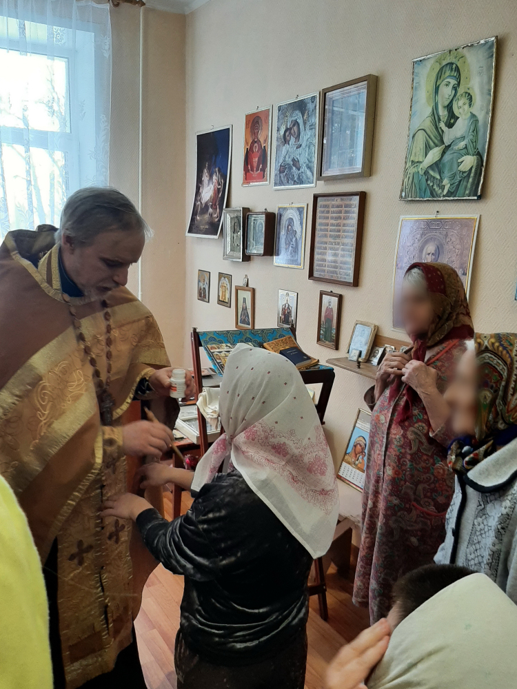 Отец Михаил совершил Таинство Елеосвящения (Соборования) для тринадцати духовно окормляемых постояльцев интерната.