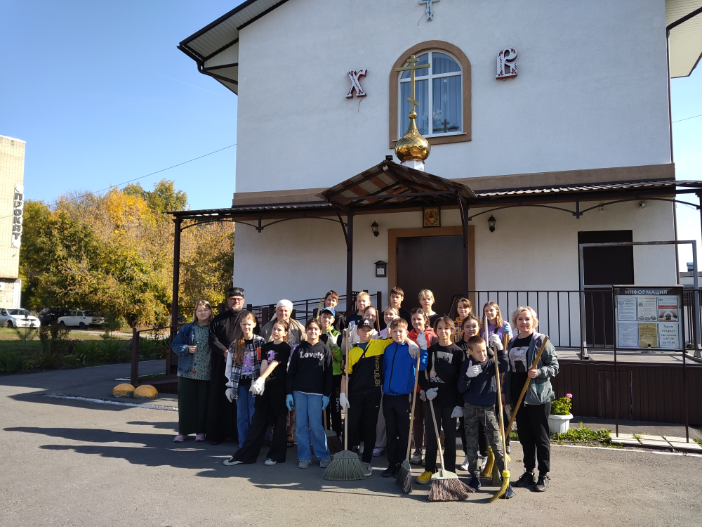 Учащиеся общеобразовательной школы № 71 приняли участие в уборке территории храма Трех святителей Вселенских