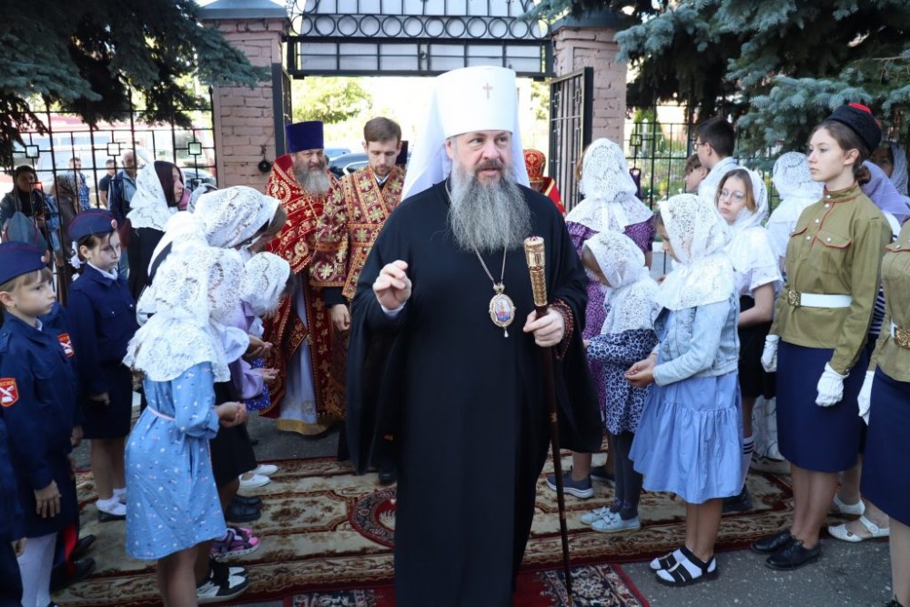 Перед началом богослужения у входа в храм архиереев встречали воспитанники воскресных школ Сердобской епархии и обучающиеся казачьих классов.