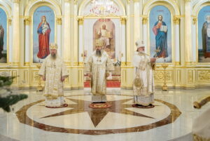 Вечером 7 января 2024 года, в праздник Рождества Господа Бога и Спаса нашего Иисуса Христа, митрополит Пензенский и Нижнеломовский Серафим, епископ Кузнецкий и Никольский Назарий, епископ Сердобский и Спасский Митрофан совершили великую вечерню в Спасском кафедральном соборе г. Пензы.