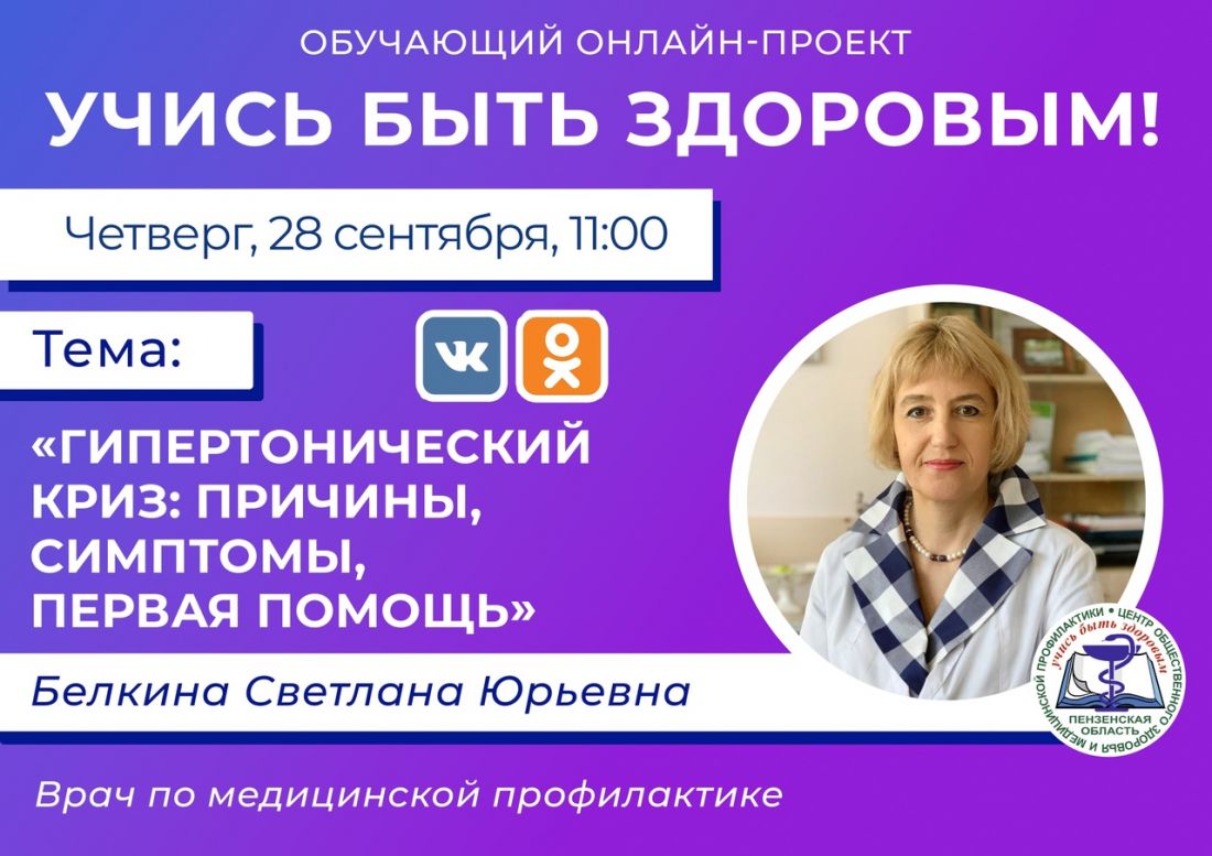 На этот раз с пензенцами поговорят о причинах, симптомах и первой помощи при гипертоническом кризе.