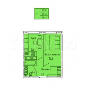 - Общая площадь: 29.4 м²