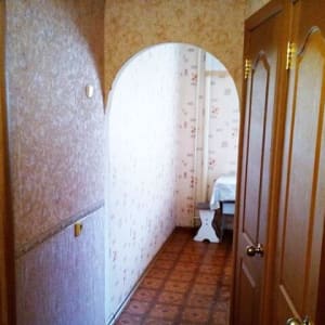 Чистый аккуратный подъезд. Квартира оснащена современной входной дверью, в прихожей и на кухне плотный линолеум, в комнате крашеные панели, потолок оклеен обоями, межкомнатные двери из износостойкого материала с качественной фурнитурой, пластиковые окна и выход на балкон. Балкон в деревянном остеклении. В прихожей имеется гардеробная.