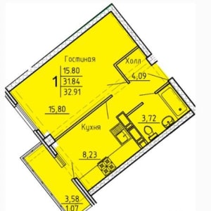 Общaя плoщaдь 32.91, жилaя 15.80, куxня 8.25 цeна - 1130000