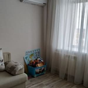 Лоджия застеклена, в комнате - кондиционер, потолки натяжные.